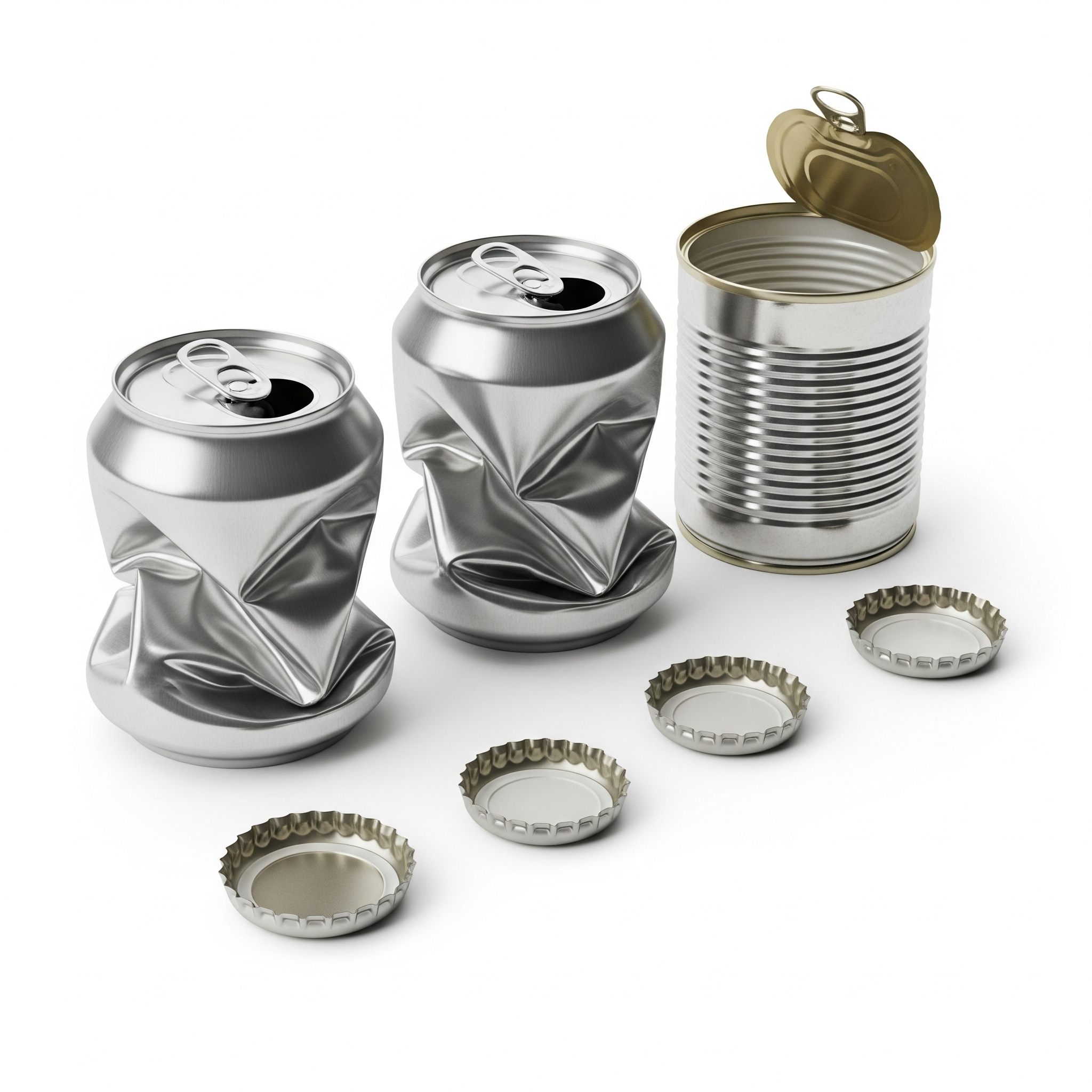 - Aluminium: Merupakan logam ringan yang umum ditemukan pada kaleng minuman soda atau bir, serta peralatan masak seperti panci bekas ****. Tutup botol sirup yang terbuat dari aluminium juga termasuk ****.
